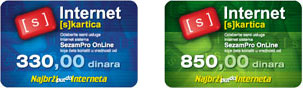 Nova [S] kartica - Univerzalna dopuna SezamPro kartice su dobile novu funkciju. Pored plaćanja SezamPro Internet usluga kartice i vaučeri mogu da se koriste i za jeftino međunarodno telefoniranje. Na jednom od preko 5000 kioska širom Srbije potražite [S] karticu, sledite jednostavna uputstva sa leve strane i razgovarajte sa inostranstvom jeftinije nego ikad. Cene poziva ka jednoj od 22.000 mreža u celom svetu možete dobiti na stranici sa [S]iT cenovnikom. SezamPro kartice se prodaju u apoenima od 330 din (dovoljno za preko 70 minuta razgovora sa fiksnim telefonima u većem delu Evrope i sveta) i 850 din (oko 3 sata razgovora). Više informacija možete naći na www.SIT.rs sajtu. [S] kartice se na kioscima nalaze već skoro 7 godina i do sada su služile za dopunu Interneta. U ovom trenutku na kioscima možete pronaći SezamPro kartice koje izgledaju ovako: